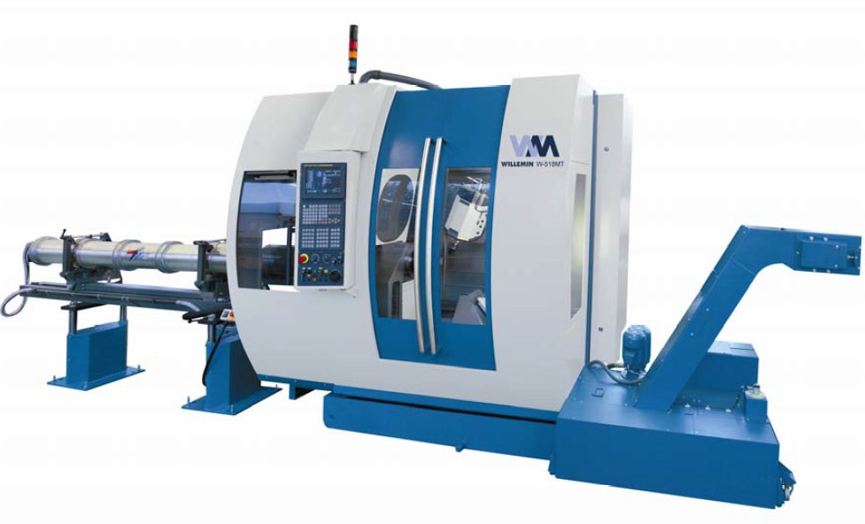 518MT加工中心可配備多種自動系統(tǒng),自主操作性極強,尤其適用于棒給和零件的裝卸。通過一個棒料進給裝置或一個棒料供應系統(tǒng),棒料可裝入A軸分度盤。 可配備各種裝置的518MT加工中心,其超強的靈活性可以裝載長/短棒料,棒料的直徑可達65mm,各種裝卸系統(tǒng)可用于卸載成品零件。為了進一步加強機床 的自動性,威力銘-馬科黛爾公司可在機床上配備一支萬能操作臂,用于裝載和移動零件至/從庫區(qū),也可用于卸載棒料邊角料。威力銘-馬科黛爾公司可根據(jù)客戶 需求提供特殊的解決方案。