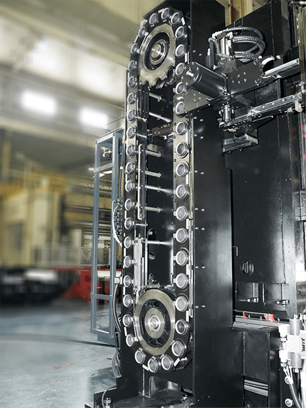 刀庫可以對(duì)重型刀具進(jìn)行穩(wěn)定和準(zhǔn)確的刀具交換,刀庫外圍全封閉護(hù)罩可以使操作人員安心的進(jìn)行刀具交換和裝卸。