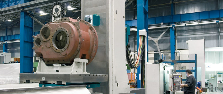 ●可進(jìn)行輪廓加工的閉式靜壓工作臺(tái),通過一個(gè)雙小齒輪齒圈系統(tǒng)驅(qū)動(dòng)(預(yù)載消隙),并實(shí)現(xiàn)優(yōu)化的4軸和5軸聯(lián)動(dòng)加工
